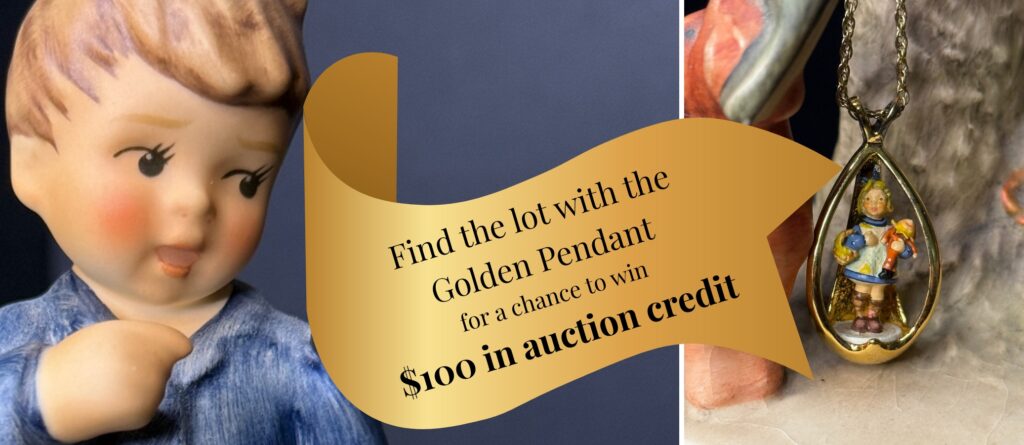 Somewhere in this auction, a golden Hummel pendant is hidden within one of the lot photos…